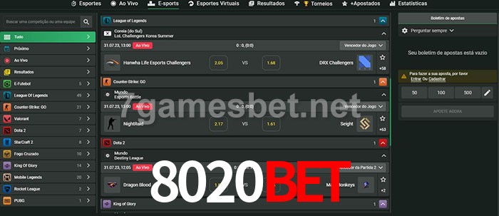 O 8020bet oferece uma grande seleção de opções de apostas em e-sports com probabilidades competitivas